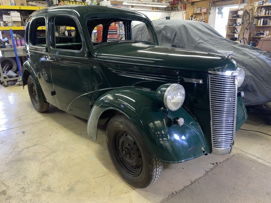 The E93A was introduced in 1946 and built by Ford, UK at its Dagenham, Essex assembly plant. No records exist to explain the extended boot. The best guess is that it was a prototype for the North American market where purchasers are accustomed to more trunk space than the stand version could offer. Sales of the "little" cars had been somewhat less than hoped. This one is refinished in glass-flat, green urethane and features chrome bumpers with optional overriders, a period-correct side mirror, running boards, dual wing-mounted taillights and a third brake light for safety..